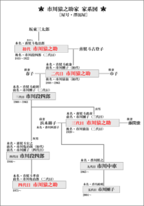 市川猿之助さんの家系図(かけいず)や市川宗家との続柄および名跡(めいせき)に関する基本的な解説を行います。