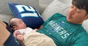【画像:岩隈久志、生後1カ月で三女の顔分かるショット パパに見つめられる娘へ反響「顔立ちの整ったお子さん」「寝顔の天使」】